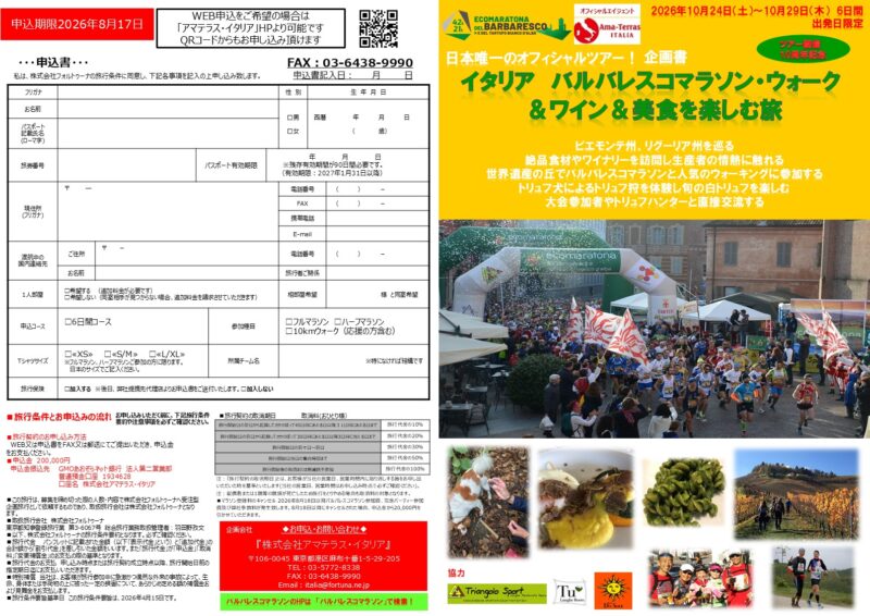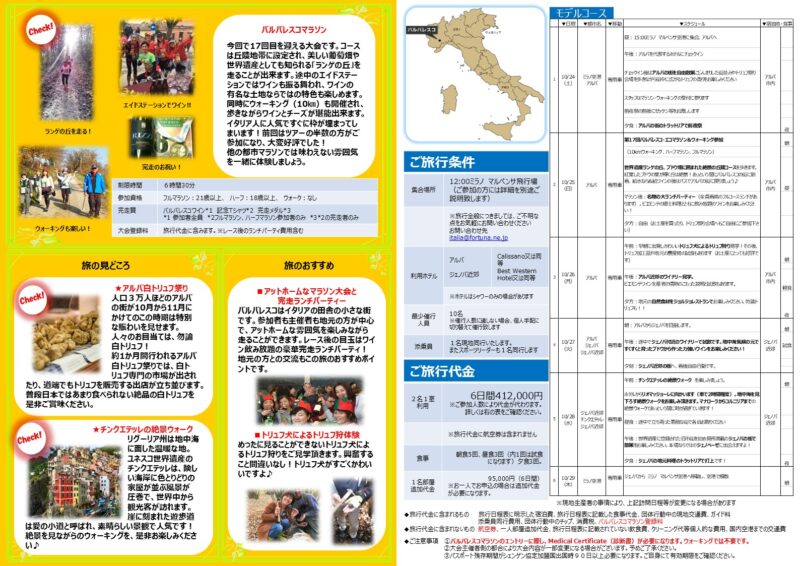 お問い合わせ先:アマテラス・イタリア内 バルバレスコマラソン・ウォーキング日本事務局 italia@fortuna.ne.jp